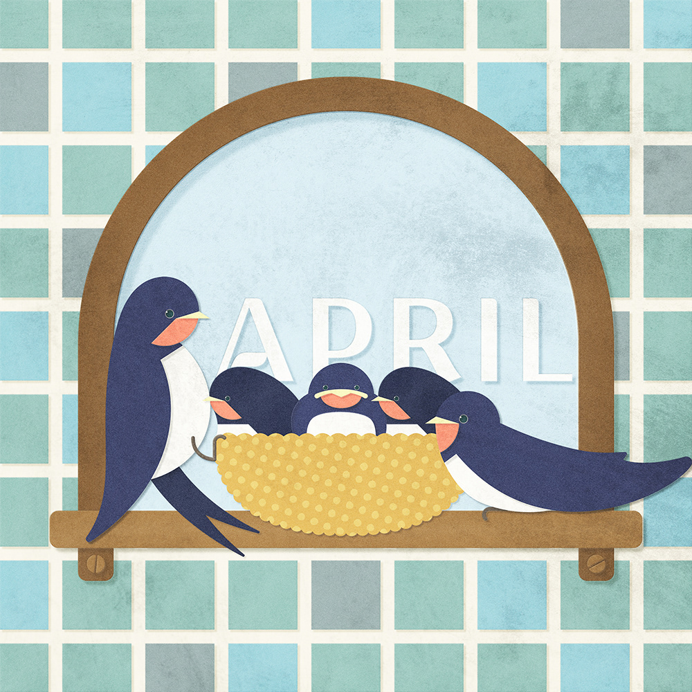 A Swallow Family -April illustration 2025