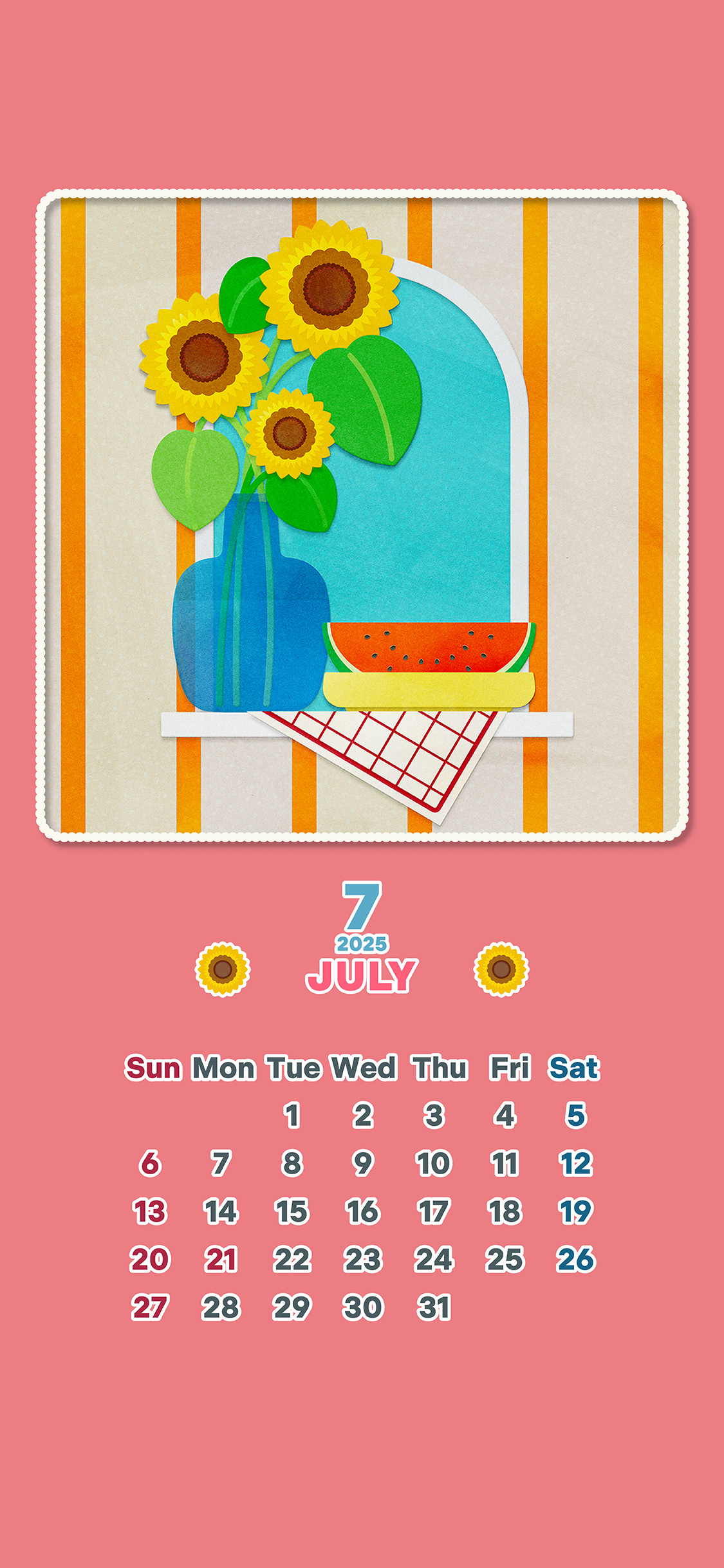 Summer Vibes! July 2025 Phone Calendar Wallpaper